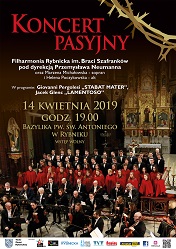 14.04. godz. 19.00 zapraszamy na koncert Pasyjny do Bazyliki św. Antoniego w Rybniku. Wystąpią: Filharmonia Rybnicka pod dyr. Przemysława Neumanna oraz Marzena Michałowska - sopran i Helena Poczykowska - alt. W programie koncertu znajda się utwory: „Stabat Mater” Giovanniego Pergolesiego oraz „Lamentoso” Jacka Glenca. „Stabat Mater” w dziejach muzyki pełni taką rolę, jak pieta w sztukach plastycznych. Ukazuje mękę i śmierć Zbawiciela z perspektywy cierpienia jego Matki. Kompozycja Pergolesiego zajmuje w tej historii odrębne i wyjątkowe miejsce. Najczęściej wydawany w wieku XVIII utwór, najpopularniejsze Stabat Mater trzech ostatnich stuleci i najsławniejsze dzieło przedwcześnie zmarłego geniusza, który właśnie tej kompozycji ową opinię zawdzięcza. Bazylika pw. św. Antoniego w Rybniku, ul. Mikołowska 4. Wstęp wolny.