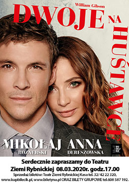 08.03.2020 o godz. 17:00 serdecznie zapraszamy na spektakl w gwiazdorskiej obsadzie! "Dwoje na huśtawce" to romantyczna, zabawna, a jednocześnie przejmująca historia dwójki nieznajomych - Gizeli Moscy i Jurka Rajskiego, którzy trafili na siebie w przełomowych momentach swojego życia. Dziewczyna, chłopak i uczucie. Raz szczerość, raz kłamstwo. Raz miłość , raz nienawiść. Raz niewypowiedziane szczęście, a raz głęboki smutek. Od wspólnych oddechów do całkowitego braku zrozumienia jest tylko jeden mały krok, a za chwilę znów euforia! Raz wesoło, dwa – ból brzucha ze śmiechu. Bohaterami sztuki jest dwoje trzydziestolatków pochodzących z różnych środowisk, różnych miast, mających za sobą małżeństwa i romanse. W naszym przedstawieniu wcielają się w nich Anna Dereszowska i Mikołaj Roznerski. Co wyniknie z takiego spotkania? Wielka miłość, czy banalne rozczarowanie? Odpowiedź na te pytania znajdziecie w naszym przedstawieniu. Bilety od 85 zł. KUP BILET BILETY GRUPOWE: tel. 608 587 192, www.kupbilecik.pl oraz www.biletyna.pl