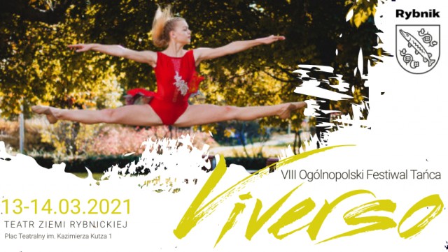 13-14.03.2021, VIII Ogólnopolski Festiwal Tańca VIVERSO'2021. Z radością ogłaszamy, że tegoroczny Festiwal odbędzie się w tradycyjnej formie, co oznacza, że spotkamy się z Wami na scenie Teatru Ziemi Rybnickiej! Wydarzenie będzie przeprowadzone w najwyższym reżimie sanitarnym, bez udziału publiczności - za to z transmisją na żywo! Zapraszamy solistów, duety, grupy i formacje!