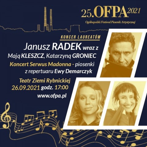 25. Ogólnopolski Festiwal Piosenki Artystycznej OFPA 2021. Koncert laureatów 25.OFPA i "Serwus Madonna" - wystąpią Janusz Radek, Katarzyna Groniec i Maja Kleszcz.