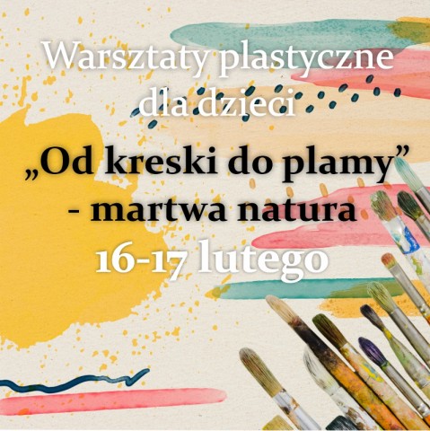 16 -17.02.2022, godz. 9:00 do 12:00. Warsztaty plastyczne dla dzieci z klas IV-VIII.