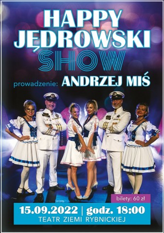15.09.2022 o godzinie 18.00 zapraszamy na Happy Jędrowski Show. Gwarantujemy potężną dawkę humoru, zabawy, uśmiechu, dobrej muzyki, kolorowych strojów i niegasnącego optymizmu, który udziela się każdej osobie obecnej na widowni. Koncert poprowadzi Andrzej Miś, znany ze swego poczucia humoru i lubiany przez widzów i słuchaczy prezenter telewizyjny i radiowy. Będzie się działo! Bilety: 60 zł | KUP BILET