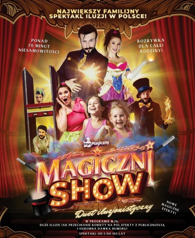 Magiczni Show – pokaz iluzji dla całej rodziny. Ferie z Teatrem. 17.01.2023 o godzinie 18.00 wystąpią: Pan Magiczny, czyli Sebastian Grabowski – Mistrz Polski w iluzji scenicznej i jego urocza Partnerka. Artysta, który występował niejednokrotnie na scenach Anglii, Niemiec, Francji, Holandii, a nawet w Wietnamie i Kambodży! Część widzów może go kojarzyć z programu Mam Talent, gdzie dał popis swoich iluzjonistycznych umiejętności. Magiczni Show to spektakl pełen śmiechu, magii i niesamowitości, który angażuje całą publiczność dzięki trikom pokazywanym w takt muzyki. Bilety: 40 zł | KUP BILET