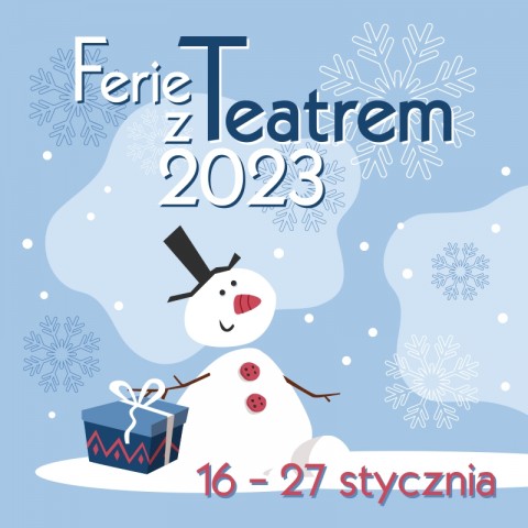 Zapraszamy na cykl wydarzeń artystycznych pod nazwą Ferie z Teatrem 2023, adresowanych dla dzieci, młodzieży i dorosłych. Szczegóły znajdują sie w repertuarze na styczeń 2023