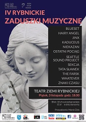 3 listopada o godz. 18.00 zapraszamy na IV Rybnickie Zaduszki Muzyczne. W hołdzie Artystom, którzy odeszli do największej orkiestry świata wystąpi 12 zespołów: BLUESET, HAIRY ANGEL, JINX, KADUCEUS, NIEKAZAN, OSTATNI POCIĄG, SEATTLE SOUND PROJECT, SEKCJA, TATA SŁAWEK, THE FARSK, WHATEVER, ZNAKI CZASU. Bilety: w przedsprzedaży 10 zł, w dniu koncertu 15 zł. KUP BILET