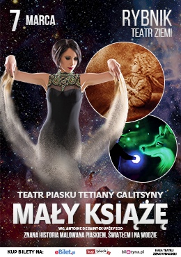 7.03.2019 r. o godz.18.30 zapraszamy na niezwykły spektakl malowany piaskiem. Teatr Piasku Tetiany Galitsyny, zwyciężczyni programu "Mam Talent", wraz z Gwiazdą "Mam Talent" VLODYR-em, najszybszym malarzem na świecie oraz grupą artystów, przygotowywała unikalne widowisko – historię Małego Księcia wg Antoine de Saint-Exupéry’ego, malowaną na żywo piaskiem, światłem i na wodzie, połączoną z grą aktorów, świateł i cieni oraz techniką szybkiego malowania (Speed Painting). Dopełnieniem niezapomnianego, ponadgodzinnego show, jest przepiękna oprawa muzyczna, poruszająca najgłębsze emocje i przenosząca nas na magiczną planetę Małego Księcia. Ta pełna ciepła opowieść nauczy dzieci ponadczasowych wartości i przypomni dorosłym o potędze prawdziwej przyjaźni. „Mały książę” to genialna opowieść dla całej rodziny, która więcej mówi o życiu, niż grube, uczone księgi. Bilety: 65 zł balkon, 75 zł II miejsca, 85 zł I miejsca. KUP BILET