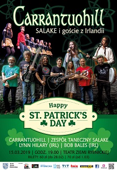 15.03 o godz. 19.00 zapraszamy na koncert z okazji Dnia św. Partyka. Wystąpią: zespół Carrantuohill, zespół taneczny Salake oraz goście z Irlandii: Lynn Hilary i Bob Bales. Bilety do kupienia niebawem: 60 zł w przedsprzedaży do 28.02. | 70 zł od 1.03. KUP BILET