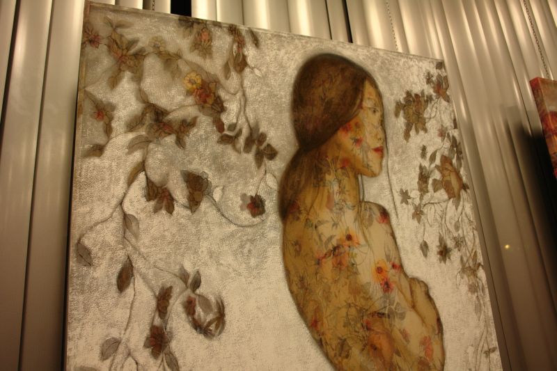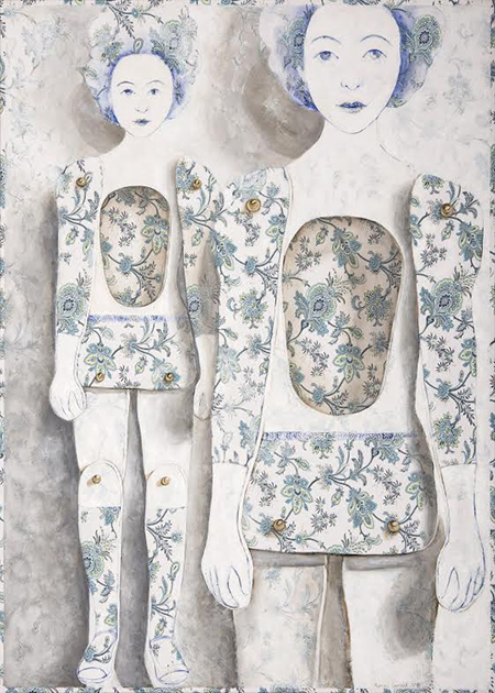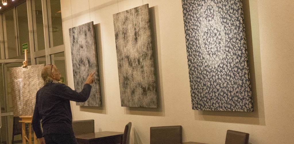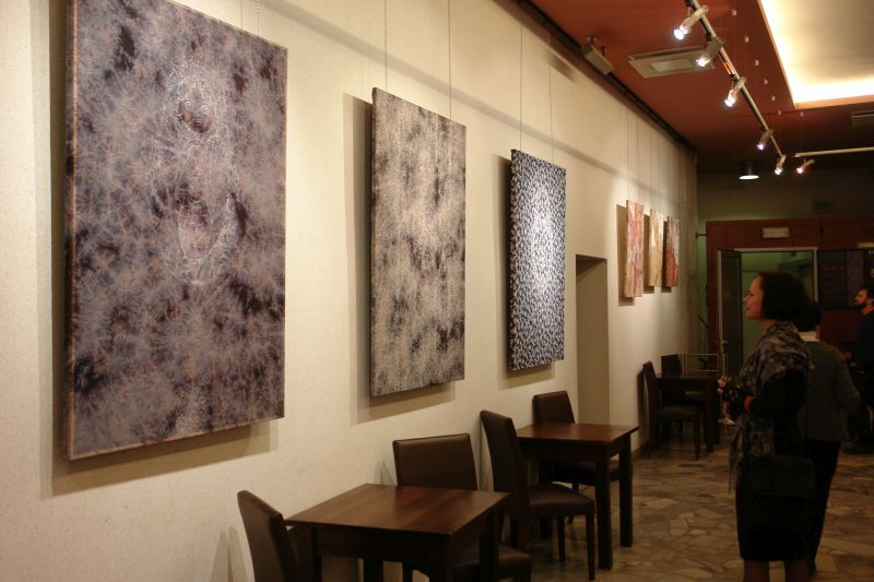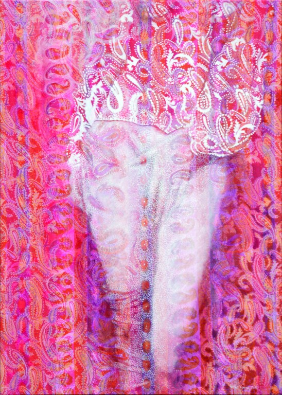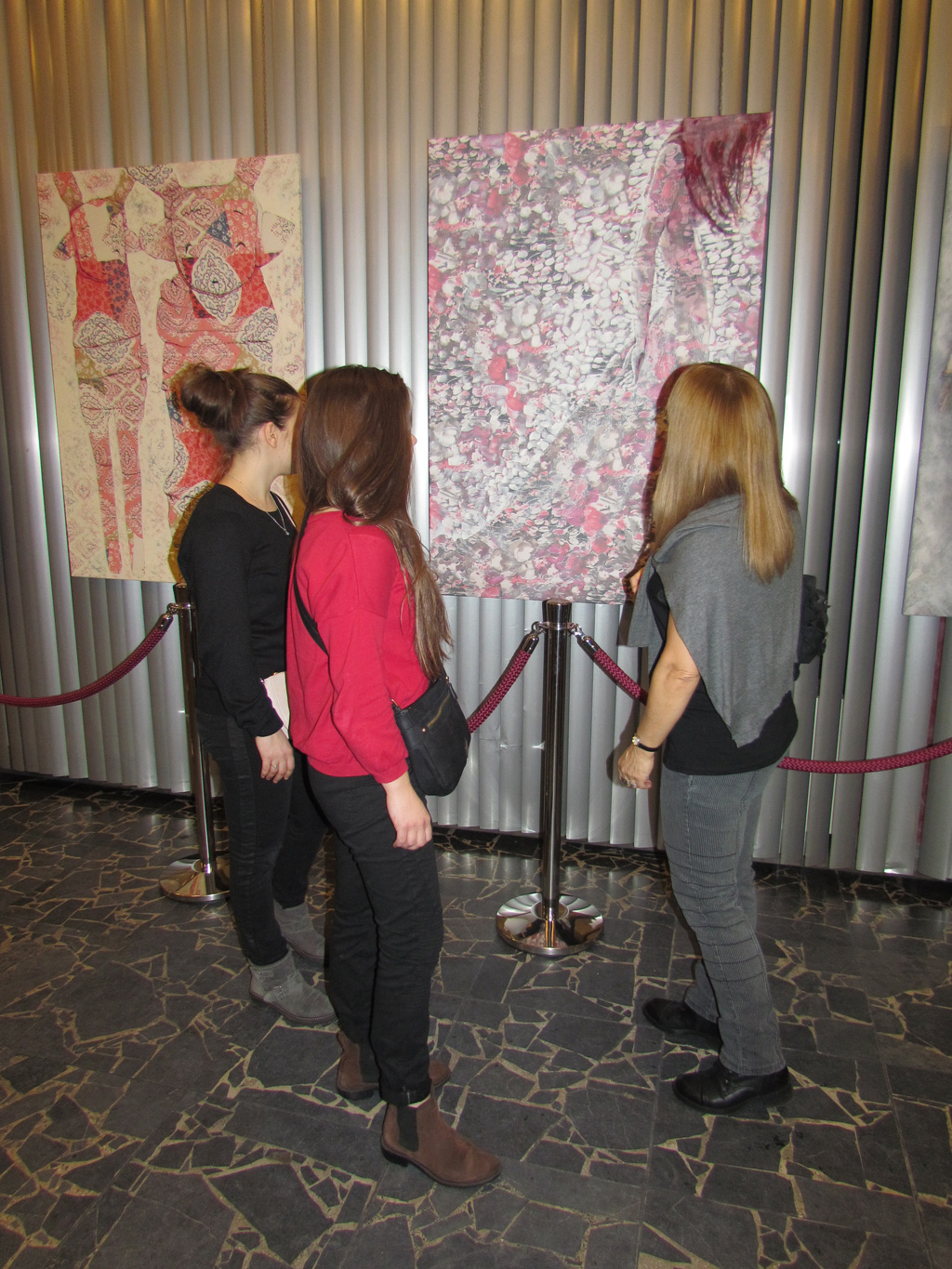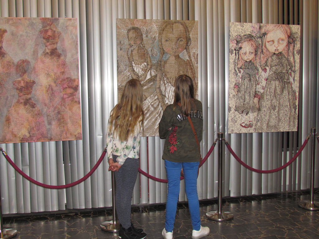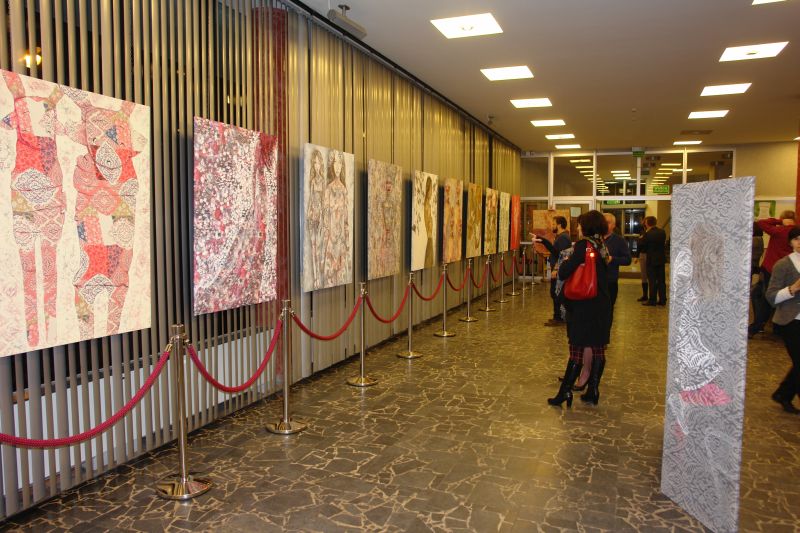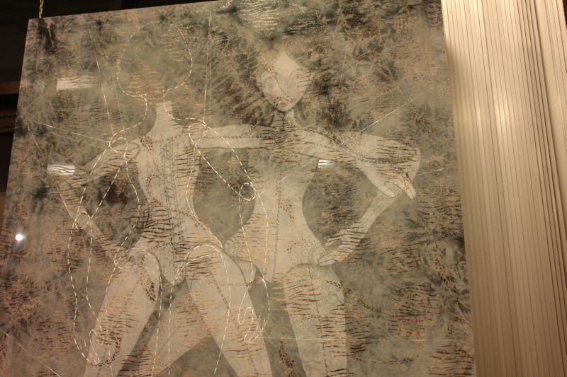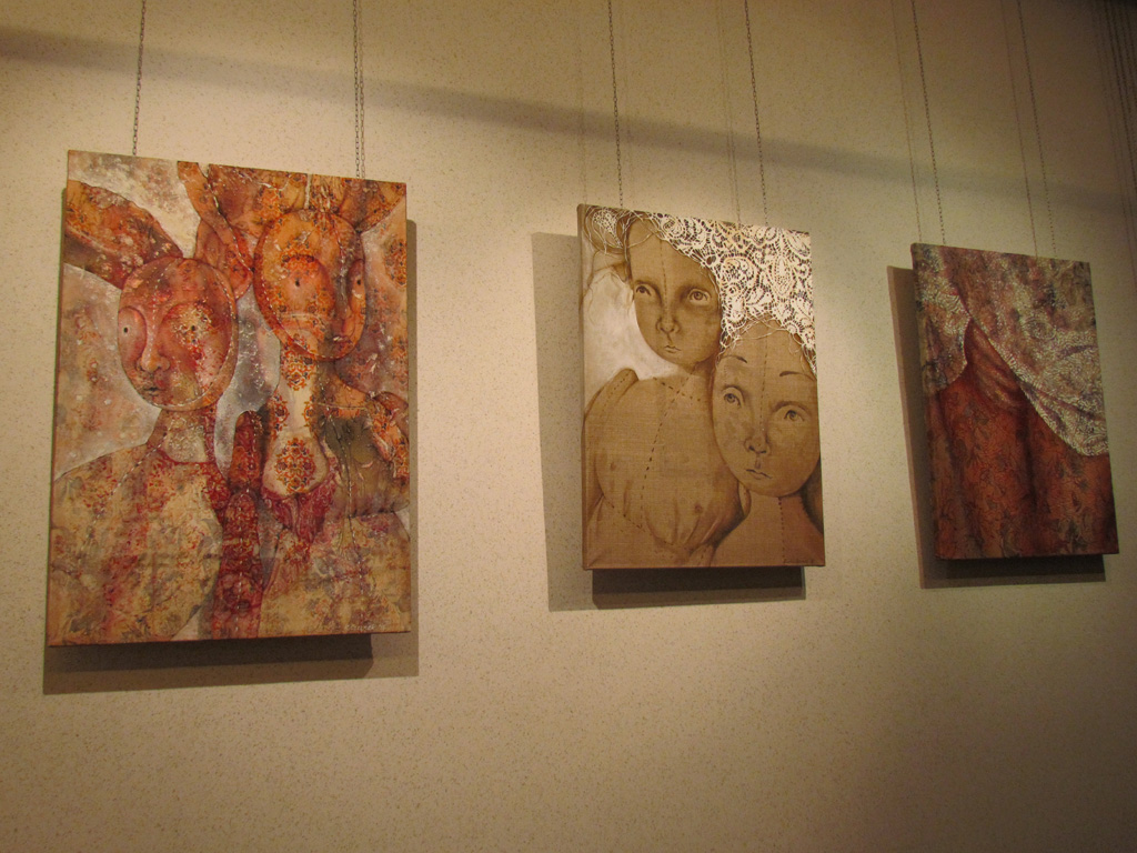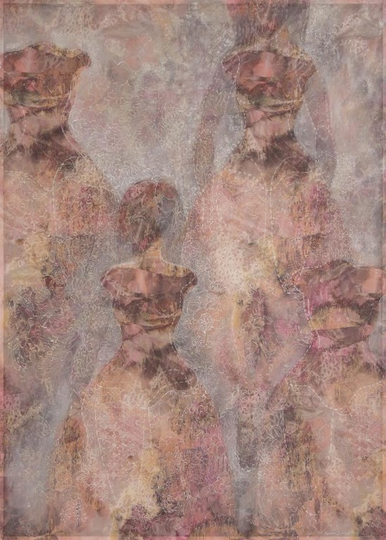 Prezentowane na wystawie prace wykonane są w jej specjalnej technice własnej, dzięki której osiąga efekt przenikania płaszczyzn. Dzięki zastosowaniu w swoich obrazach nakładanych na siebie półprzeźroczystych tkanin, które poddaje obróbce malarsko-hafciarskiej, uzyskuje efekt bliski miękkości i dekoracyjności tkaniny. Artystka bawi się łączeniem technik, zacieraniem granic pomiędzy malarstwem i szeroko pojętą tkaniną,