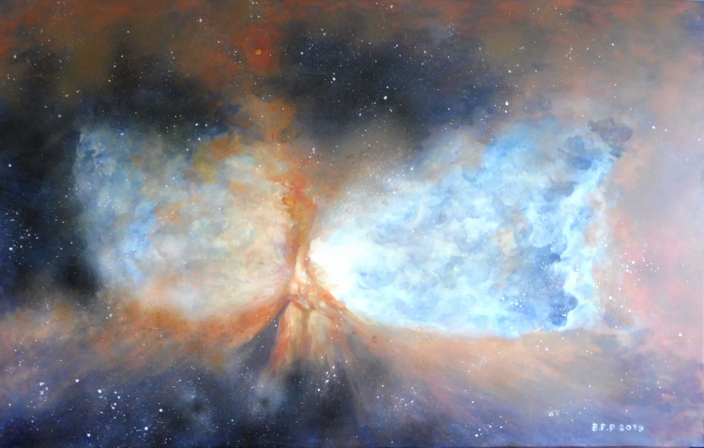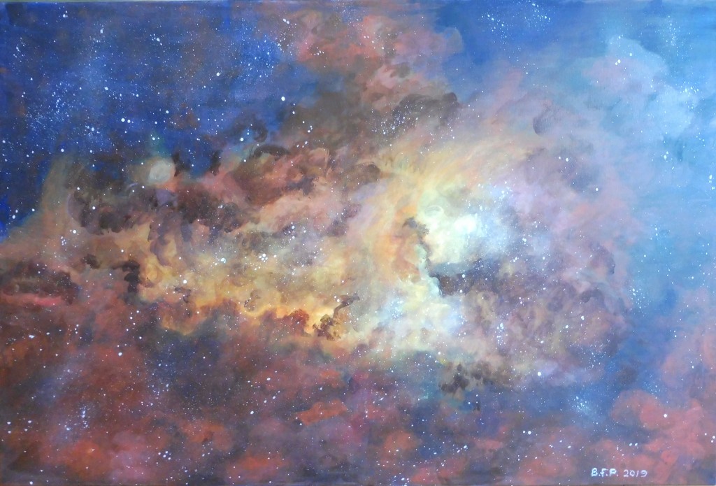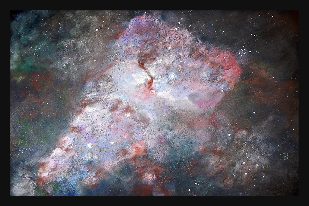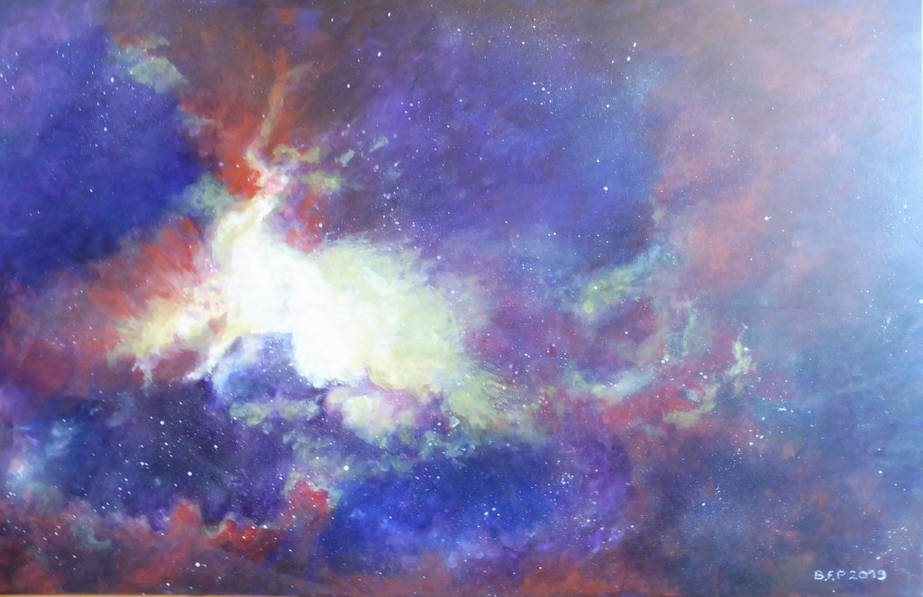 Wystawa pod tytułem "Kosmiczna podróż " wynikła właśnie z fascynacji potęgą kosmosu zwanego też uniwersum lub wszechświatem. Astronomowie przyjmują, że Wszechświat składa się z niewyobrażalnej dla zwykłego śmiertelnika ilości ok. biliona galaktyk, a niektóre z nich mogą liczyć nawet ponad bilion gwiazd. Na obrazach można zobaczyć gwiazdy, planety ,mgławice i galaktyki. Prace wykonane są w technice akryl na płótnie i pastel na brystolu .