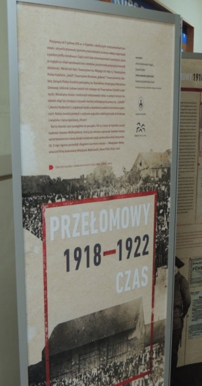 Wystawa Przełomowy czas 1918-1922 to zwarte, bogato ilustrowane przedstawienie krótkiego, ale decydującego okresu w historii Górnego Śląska, podające w przystępnej formie informacje o powstaniach śląskich, przygotowaniach i przebiegu plebiscytu aż po uroczysty akt przekazania władzy w Rybniku stronie polskiej. Ilustracje pochodzą ze zbiorów Muzeum w Rybniku.