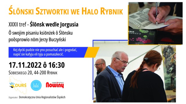 Popularny pisarz ślōnski Jerzy Buczyński poôsprowio nōm ô tym jako we swojich ksiōnżkach widzoi historyjo i a dzisiejszy dziyń naszego hajmatu -Ślōnska . Całośc poklōdzōm człōnkowie Demokratycznej Unii Regionalistōw Śląskich.