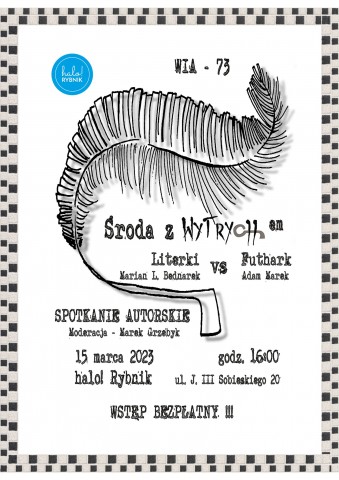 Zapraszamy 15 marca do halo! Rybnik, gdzie na poetycko „Środa z Wytrychem” a tam Literki vs Futhark czyli promocja dwóch tomów poezji Mariana L. Bednarka i Adama Marka w moderacji Marka Grzebyka.