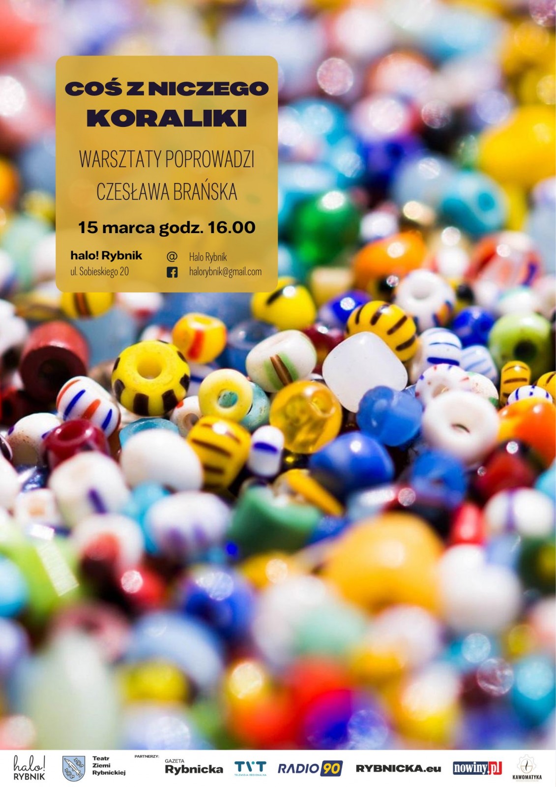 Podczas marcowych warsztatów "Coś z niczego" główną rolę będą odgrywać koraliki. Planujemy tworzyć bransoletki, broszki, kolczyki, najróżniejsze zawieszki czy breloczki.