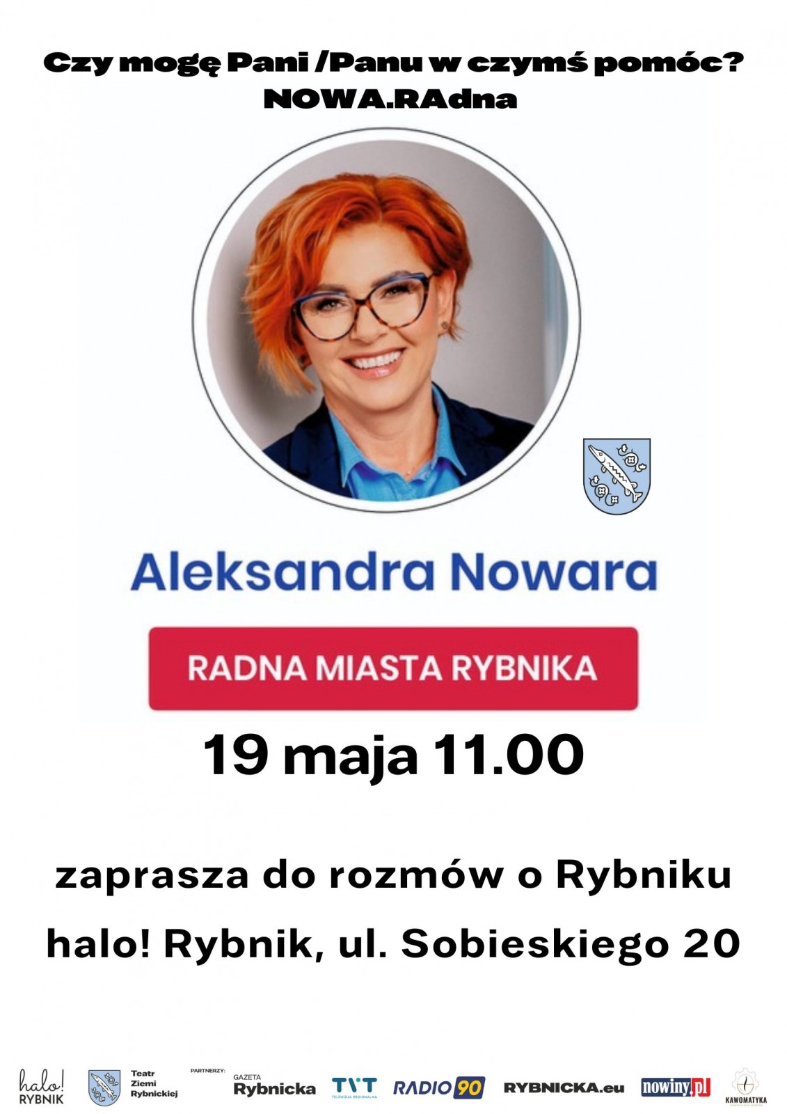 Radna Aleksandra Nowara zaprasza do rozmów o Rybniku, co można ulepszyć, z czym macie Państwo problem, a może coś chcielibyście zmienić w naszym mieście?