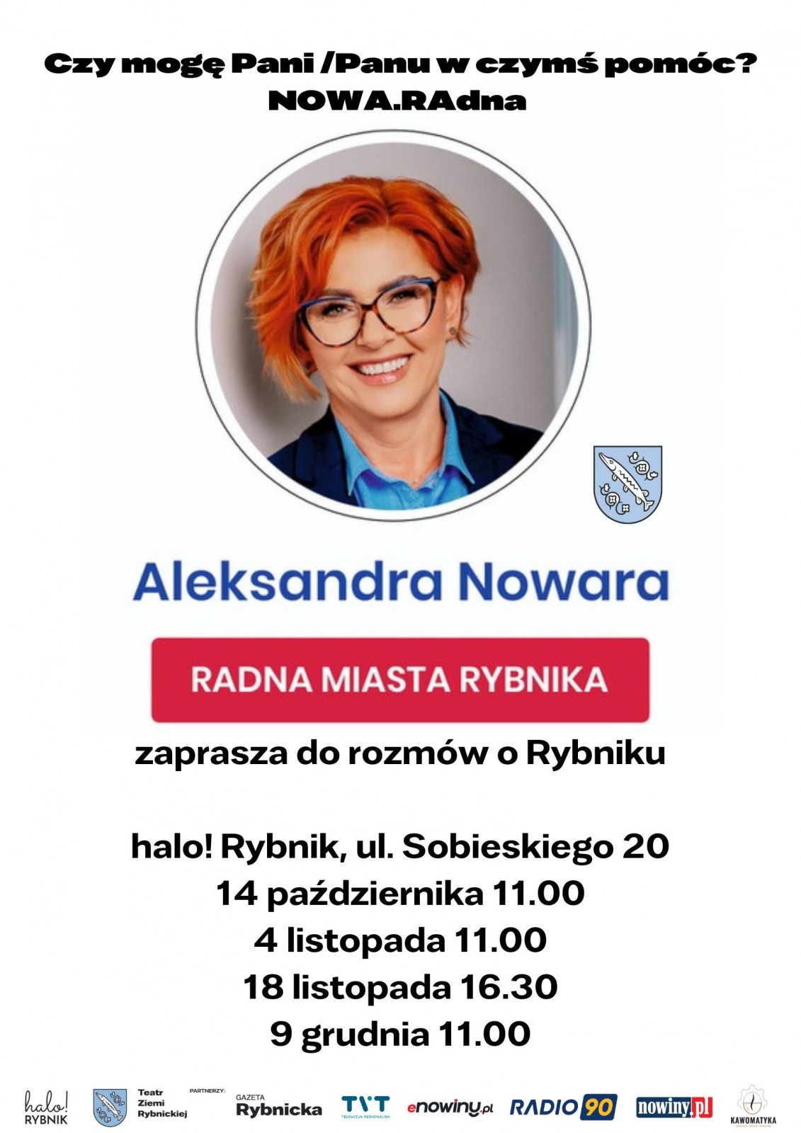 Radna Aleksandra Nowara zaprasza do rozmów o Rybniku, co można ulepszyć, z czym macie Państwo problem, a może coś chcielibyście zmienić w naszym mieście?