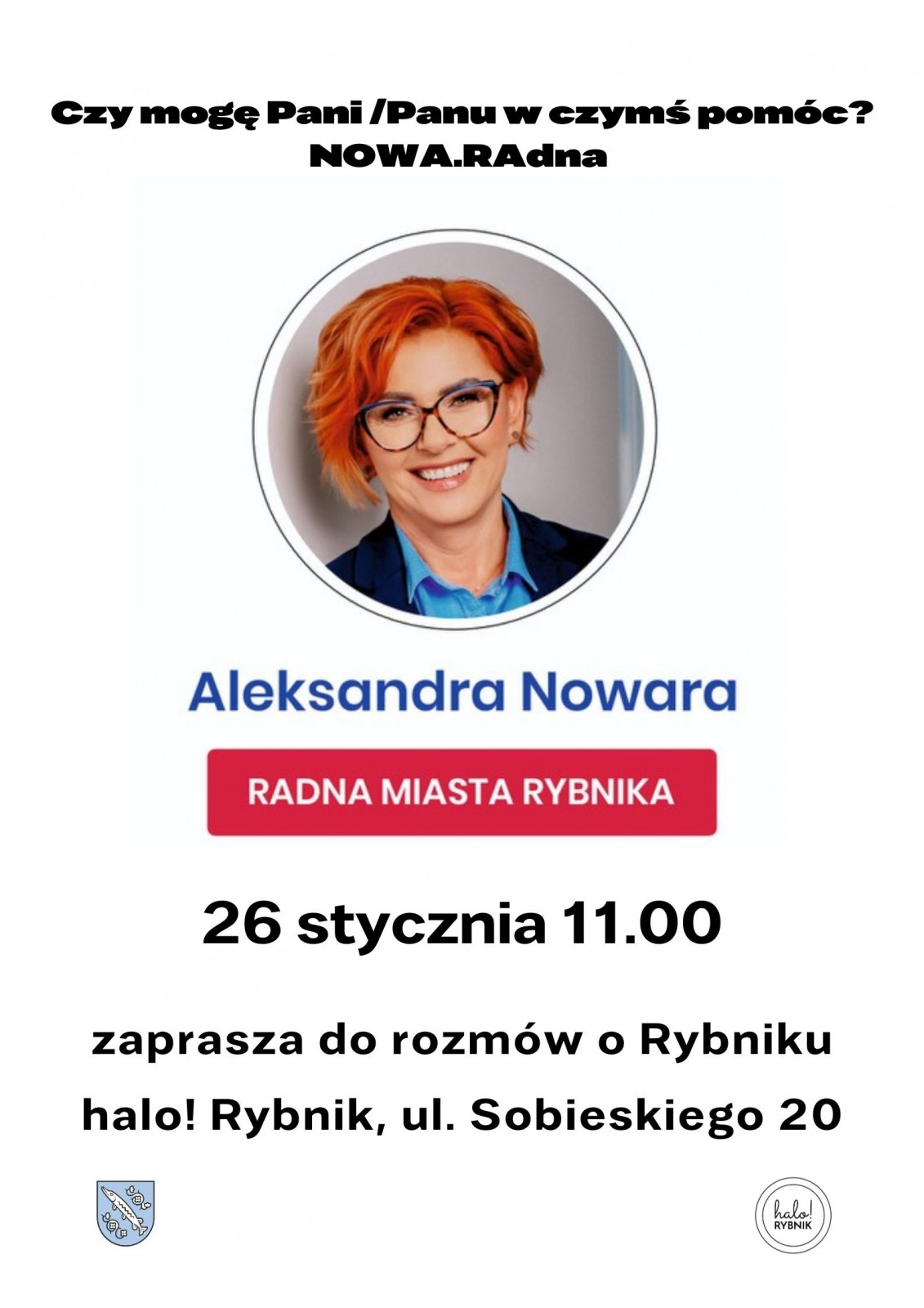 Radna Aleksandra Nowara zaprasza do rozmów o Rybniku, co można ulepszyć, z czym macie Państwo problem, a może coś chcielibyście zmienić w naszym mieście?