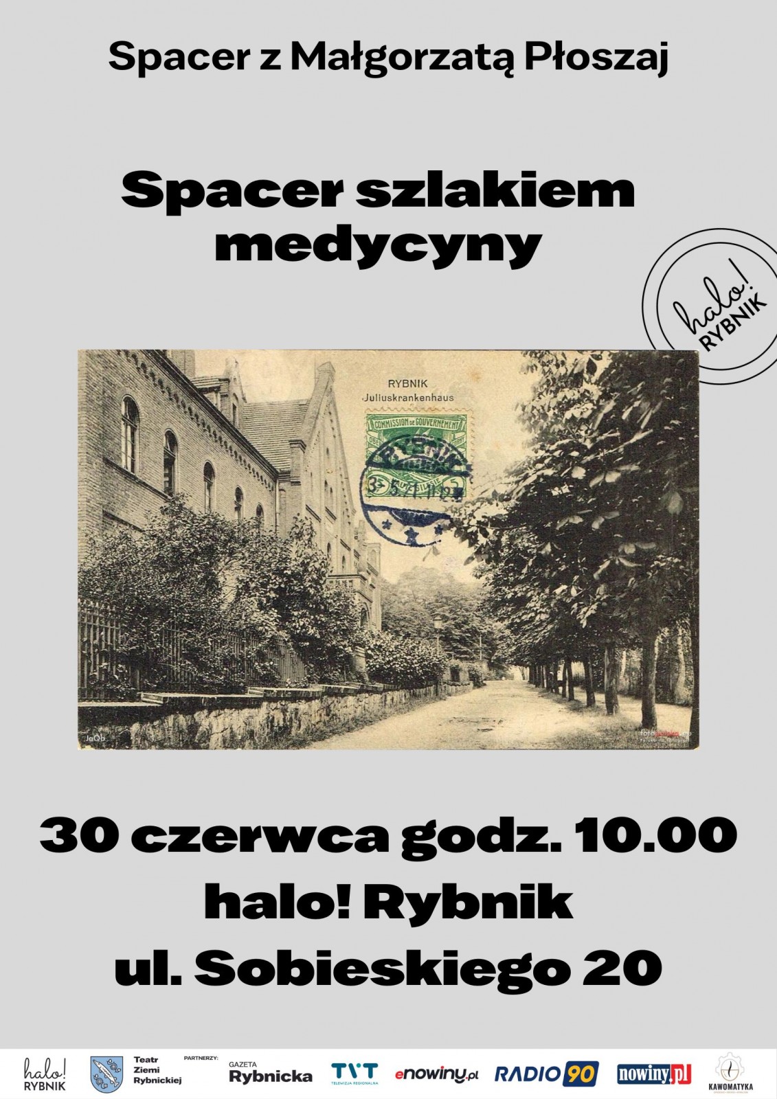 Powędrujemy tym razem szlakiem dawnych lekarzy, dentystów oraz położnych, czyli osób, które ratowały życie i zdrowie naszych przodków, jak np. dr Sachtleben, dr Boretius, dr Miedniak, czy dr Biały. Na trasie spaceru odwiedzimy m.in. dawny szpital knapszaftowy oraz miejsca, gdzie przyjmowali przedwojenni dentyści czy lekarze. Nie zabraknie historii o postaciach kontrowersyjnych jak choćby o psychiatrze zbrodniarzu z Rybnika.