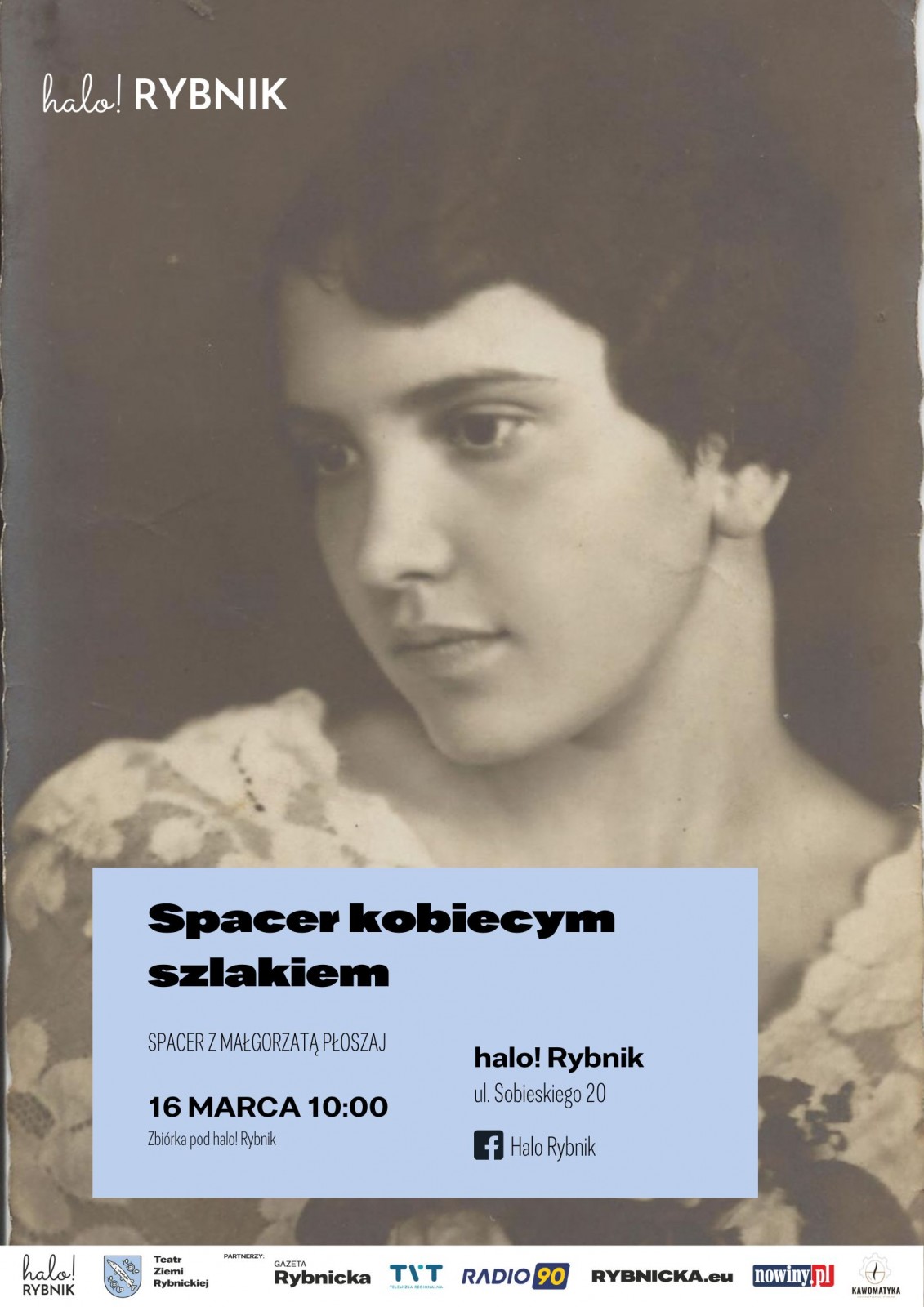 Na naszej trasie odwiedzimy m.in. panią burmistrzową, farmaceutkę, która w czasie wojny wykazała się wielkim bohaterstwem, kilka biznesmenek, wiele żon wspierających swych aktywnych mężów, ale przede wszystkim wspólnie poplotkujemy o dawnym Rybniku i paniach, które wpisały się w historię naszego miasta.