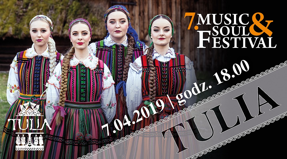 Drugiego dnia 7.Music&Soul Festivalu przygotowaliśmy dla Państwa prawdziwą bombę muzyczno-energetyczną! Wyjątkowy koncert zespołu, który jest najlepszym współczesnym ambasadorem polskiej kultury: TULIA! Muzyka TULII to połączenie charakterystycznych dla polskiej muzyki ludowej białych głosów wspomaganych najnowocześniejszą produkcją muzyczną tkwiącą korzeniami gdzieś pomiędzy brzmieniami takich artystów jak: Nick Cave, Dead Can Dance, David Sylvian, Bon Iver, czy Jan Garbarek. Całość uzupełniają unikatowe, tradycyjne instrumenty o tak ekscentrycznych nazwach jak: suka biłgorajska, lira korbowa czy piszczałka wielkanocna. To wszystko tworzy klimat niepowtarzalnego, natychmiast rozpoznawalnego, charakterystycznego tuliowego brzmienia. Grupę TULIA tworzą młode, ale bardzo doświadczone artystki z gruntownym muzycznym wykształceniem. Ich kariera estradowa rozpoczynała się w zespołach ludowych pieśni i tańca. Dziś część z nich kontynuuje naukę w wyższych szkołach muzycznych lub kultywuje tradycje muzyczne w zespołach muzyki dawnej. TULIA to głosy Joanny Sinkiewicz, Dominiki Siepki, Patrycji Nowickiej i Tulii Biczak; za muzykę, produkcję, wizerunek, video oraz management odpowiada grupa producencka Public Image. 25 maja 2018r. odbyła się premiera debiutanckiej płyty zespołu TULIA. Wypełniły ją głównie niezwykle oryginalne wersje utworów tak znakomitych artystów jak m.in.: Obywatel GC, Wilki, O.N.A., Seweryn Krajewski, Stan Borys, Depeche Mode, Mettalica czy Dawid Podsiadło a także autorskie kompozycje zespołu. Koncert "Premier" 55. Krajowego Festiwalu Polskiej Piosenki w Opolu niemal w całości należał do zespołu TULIA. Joanna Sinkiewicz, Dominika Siepka, Patrycja Nowicka i Tulia Biczak brawurowo wykonały utwór „Jeszcze Cię nie ma”, zdobywając najważniejsze nagrody: Nagrodę Publiczności Konkursu Premier im. Karola „Papy” Musioła, czyli tzw. Karolinkę, Nagrodę Konkursu Premier oraz Nagrodę Stowarzyszenia Autorów ZAiKS, przyznaną zespołowi za twórcze i nowatorskie podejście do tradycji polskiej muzyki ludowej. Debiutancki album zespołu TULIA uzyskał status Platynowej Płyty. 16 listopada 2018r. ukazała się reedycja albumu, zawierająca pięć premierowych autorskich utworów. Album promuje singiel "Pali się". Bilety: 50 zł w przedsprzedaży do 31.03. | 60 zł od 1.04. KUP BILET