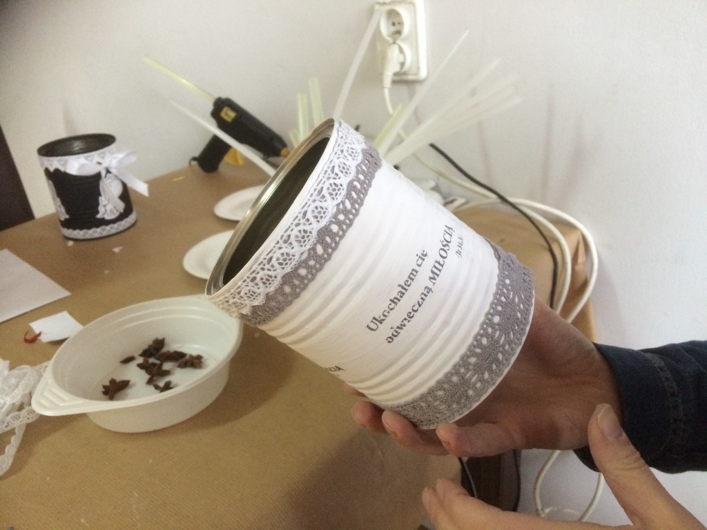 - wykonywanie lampionów oraz drobnych przedmiotów użytkowych zdobionych m.in. techniką transferu.