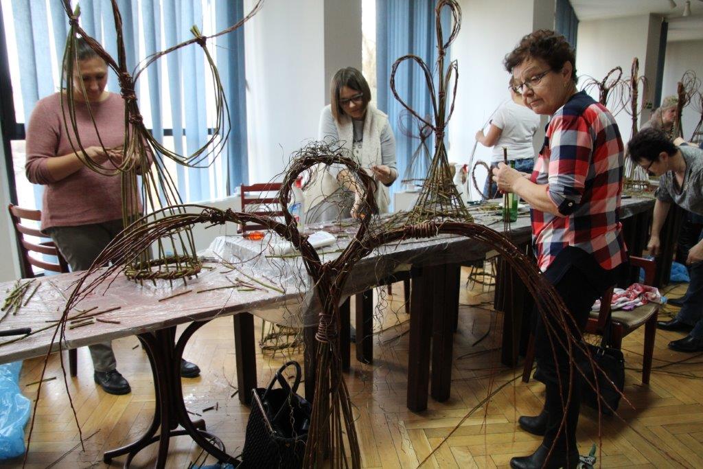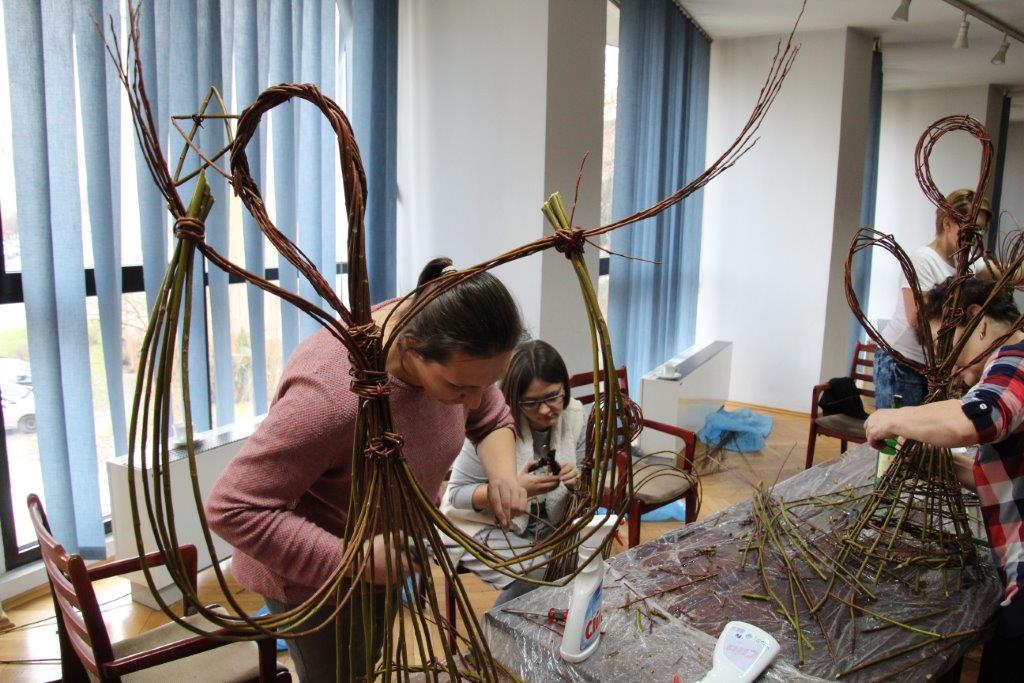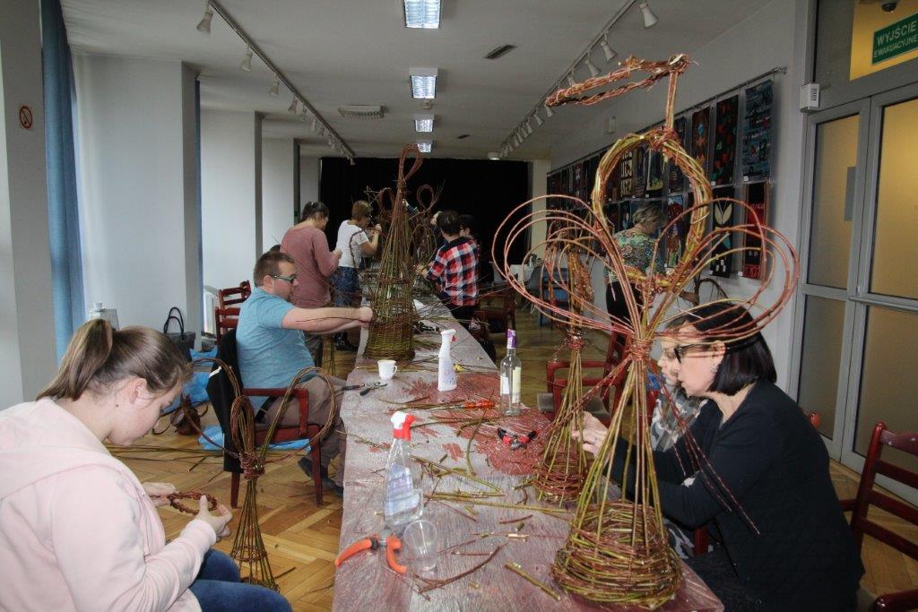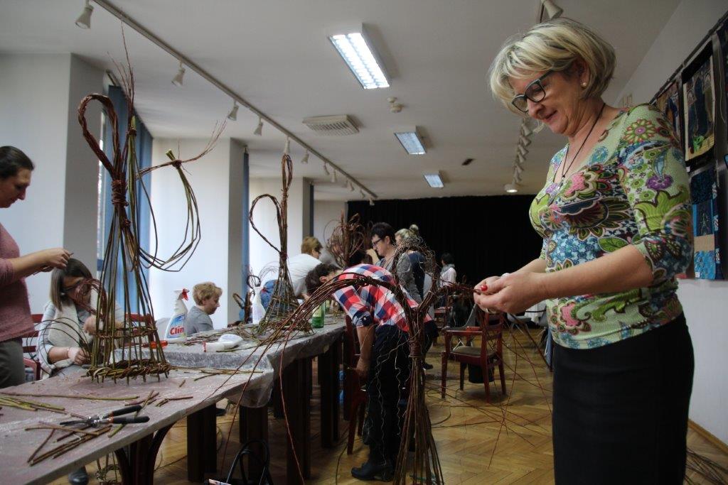 Tworzenie dekoracyjnych form przestrzennych przy użyciu materiałów naturalnych (wiklina).