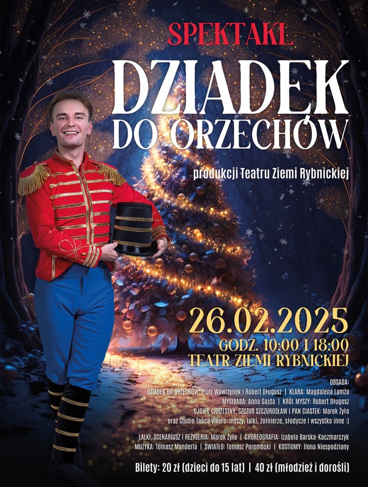 Już tradycyjnie sięgamy po klasykę kultury, aby pokazać ją w zupełnie nowym, niespotykanym wymiarze. Zapewnimy Wam potrójną dawkę świątecznego klimatu zabierając w podróż do świata, w którym rzeczywistość miesza się z fantazją, radość ze wzruszeniem, wdzięk Klary z nieporadnością Mysiego Króla, a Myszy z Ołowianymi Żołnierzykami ... Już wiecie jaka ta opowieść? Oczywiście! DZIADEK DO ORZECHÓW!