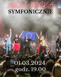 Aleja Rocka symfonicznie - to wspaniałe międzynarodowe przedstawienie, które zgromadziło na jednej scenie orkiestrę symfoniczną, solistów, chór i tancerzy z Ukrainy oraz polski zespół rockowy Żuki, który obchodzi swój jubileusz - 35 lat razem na scenie!!! Oto muzyka - aleja największych rockowych przebojów - nie tylko zabrzmi, ale przemieni się w spektakl do oglądania. Każdy z widzów będzie miał możliwość włączenia się w ten niezwykły performance - unosząc się na rockowej fali świetlnej i dźwiękowej, zanurzy się w oceanie muzyki... Tak jak szybko zmieniają się światła na scenie, tak będą przed nami migotać, błyszczeć i rozświetlać się emocje, wrażenia, uczucia. Wszyscy widzowie staną się uczestnikami niesamowitego show z nowoczesnymi wizualnymi i świetlnymi efektami specjalnymi. A zatem start, odpalamy reflektory i włączamy mikrofony - czas na naładowanie energią! Organizator: Agencja Brussa.