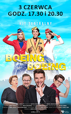 3.06.2022, godz. 17.30 i 20.30, "Boeing Boeing" - rewelacyjna komedia w znakomitej obsadzie. „Boeing Boeing” to komediowy hit teatralny w gwiazdorskiej obsadzie, który od lat przyciąga tysiące widzów. W 1991 roku sztuka została wpisana do Księgi rekordów Guinnessa jako najczęściej wystawiany spektakl w historii. Sztuka opowiada historię Maksa, któremu wydaje się, że wie, jak korzystać ze wszystkich zalet poligamii, unikając jednocześnie jej wad. Za pomocą międzynarodowego rozkładu lotów bohater utrzymuje relacje z trzema narzeczonymi naraz. W jaki sposób? Otóż każda z nich jest stewardessą w innej linii lotniczej. Pewnego dnia los płata Maksowi figla. Minimalne zmiany w rozkładach lotów sprawiają, że wszystkie narzeczone zjawiają się u bohatera niemal w tym samym momencie. Jak bohater z tego wybrnie? Czy pomoże mu niestroniąca od sarkastycznych uwag służąca Nadia? Jakie miejsce w tej całej historii obierze przyjaciel Maksa z dzieciństwa – Paweł? Boeing Boeing – zwariowana komedia sytuacyjna Sztuka autorstwa Marca Camolettiego zawiera wszystkie składniki dobrej farsy. To lot, który nie powoduje turbulencji, a jedynie mnóstwo śmiechu. Dodatkowo dobry humor gwarantuje wspaniały przekład tekstu, którego dokonał twórca dialogów w polskiej wersji filmu animowanego „Shrek” – Bartosz Wierzbięta. Obsada: Elżieta Jarosik, Karolina Chapko, Anna Jarosik, Adriana Kalska, Mikołaj Roznerski, Michał Meyer / Bogusław Kudłek. Autor: Marc Camoletti. Przekład: Bartosz Wierzbięta. Reżyser: Marcel Wiercichowski. Bilety od 80 zł już w sprzedaży. KUP BILET