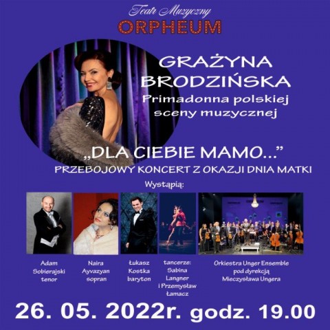 "Dla Ciebie Mamo..." - Grażyna Brodzińska i Teatr Muzyczny Orpheum. Koncert z okazji Dnia Matki