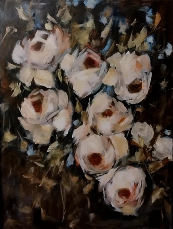 (olej i akryl), maluje również akwarelami, rysuje pastelami, ołówkiem i węglem. Jej obrazy znajdują się w kolekcjach prywatnych w Polsce, w Niemczech i w Stanach Zjednoczonych.