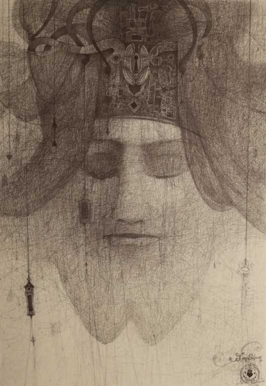 Nie staram się w swoich rysunkach odzwierciedlić portretowego charakteru głowy, interesuje mnie surowy kształt, forma, prosty kadr. Interesuje mnie próba zderzenia kształtu, formy z myślą, symboliką. Staram się „dotknąć” tego czego nie widać, lub czego nie zauważamy.