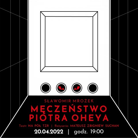 20.04.2022 o godz.19.00 zapraszamy do scenicznego świata Sławomira Mrożka, gdzie czarna komedia i farsa to język opowiadania o rzeczach fundamentalnych. Miejscem akcji jest dom zamieszkiwany przez tytułowego Piotra Oheya i jego rodzinę. Pewnego dnia, syn państwa Oheyów dostrzega w łazience obecność tygrysa. Informacja ta powoduje, że mieszkanie Oheyów zaczynają odwiedzać nietypowi goście. Co się stanie, kiedy w pozornie spokojne, ustatkowane, wręcz nudnawe życie bohaterów wkroczy nieprzewidywalne COŚ? Jakie będą konsekwencje pojawienia się nieproszonego gościa? Jedno jest pewne, nie pozostanie to bez wpływu na ich losy! Sztuka pełna jest typowych dla stylu autora groteskowych zdarzeń, w ostateczności doprowadzających do zaskakującego finału. Jednoaktówkę, nagrodzoną w konkursie teatru telewizji, Sławomir Mrożek napisał w 1959 roku. Czy jej polityczno -społeczny wydźwięk jest nadal aktualny? Odpowiedź jest jedna - trzeba to osobiście sprawdzić! Spektakl z wyjątkową scenografią, strojami z epoki i muzyką na żywo! Tego nie można przegapić! Scenariusz: Sławomir Mrożek. Reżyseria: Mateusz Zbigniew Suchan. Asystentka reżysera: Adrianna Koźlik. Kostiumy: Paulina Da-Via. Muzyka: Piotr Tkocz. Zespół w składzie: trąbka – Dorota Frączyk, gitara – Piotr Tkocz, piano – Igriana Bartoszek. Reżyseria świateł: Mateusz Preś DK oraz Tomasz Paszenda TZR. Scenografia: Mateusz Suchan i Zbigniew Suchan. Sławomir Mrożek „Męczeństwo Piotra Oheya” – spektakl w wykonaniu Teatru Na Pół TZR. Bilety: 20 zł | KUP BILET