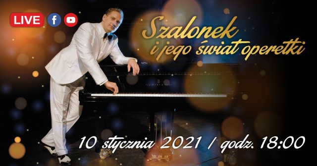 10.01.2021 o godz. 18.00 zapraszamy na transmisję kameralnego koncertu „Szalonek i jego świat operetki” wprost ze sceny Teatru Ziemi Rybnickiej. Popularne operetkowe przeboje zaśpiewa tenor Sylwester Targosz-Szalonek, któremu przy fortepianie towarzyszyć będzie Katarzyna Rzeszutek. Koncert online na żywo będzie dostępny na kanale Youtube i Facebooku TZR.