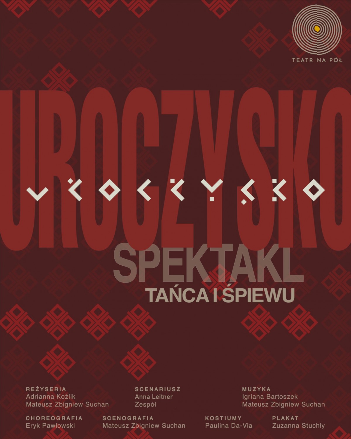 "Uroczysko" to widowisko teatralne łączące w sobie taniec i śpiew z historią utraty bliskiego. Tradycje słowiańskie przejawiające się w pieśniach, układach choreograficznych, kostiumach i scenografii łącza się z teorią Elisabeth Kubler-Ross o pięciu etapach żałoby. Pełna metafor i trybalizmu historia dwójki kobiet jest okraszona kuglarstwem i akrobacjami aktorów, tak aby ten trudny, ale niezwykle potrzebny społecznie temat przekazać w jak najbardziej dostępnej formie. W widowisku wykorzystywane są pieśni polskie, ukraińskie, litewskie i ruskie, a całość dzięki uniwersalnemu tematowi i minimalizmowi w tekstach jest zrozumiała w każdym języku.