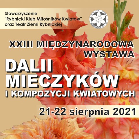 21-22.08.2021, godz.10.00 - 17.00. Otwarcie XXIII Międzynarodowej Wystawy Dalii, Mieczyków i Kompozycji Kwiatowych nastąpi w sobotę, 21.08.2021 o godz. 10.00. Ekspozycja będzie dostępna do niedzieli, 22.08 22021, do godziny 17.00. Podczas wystawy prowadzona będzie sprzedaż roślin ozdobnych i bylin. Wstęp wolny. Organizatorzy: Stowarzyszenie "Rybnicki Klub Miłośników Kwiatów" i Teatr Ziemi Rybnickiej.