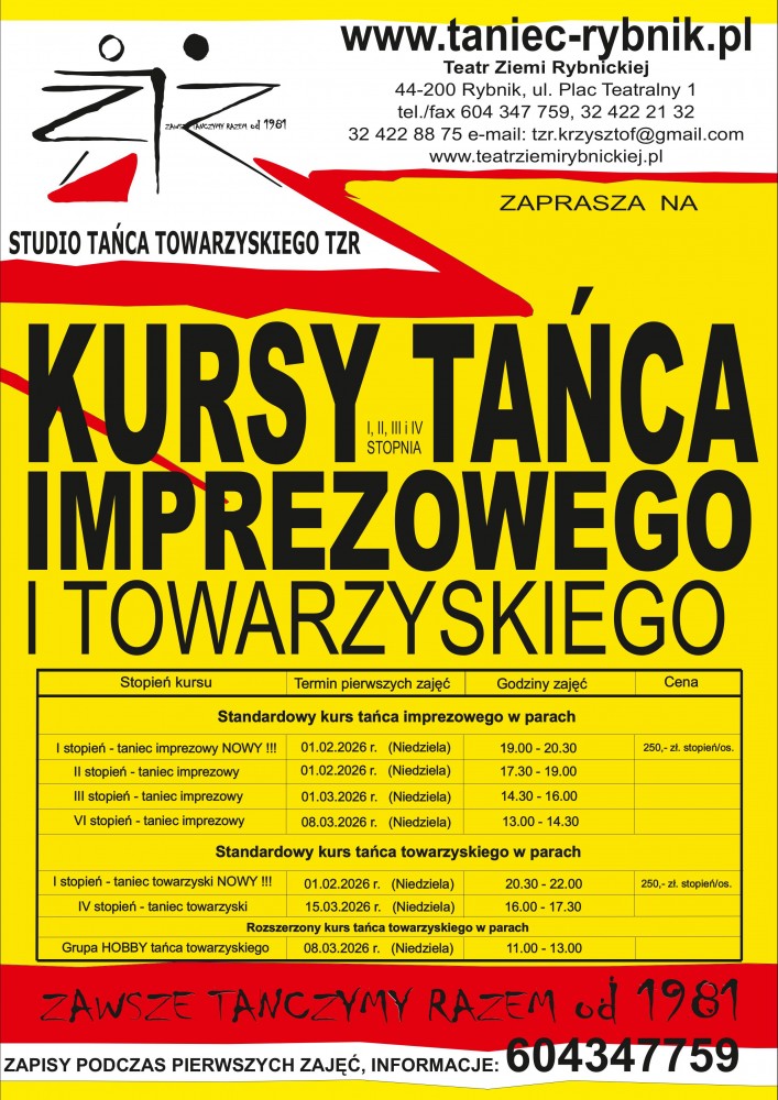 Kursy Tańca Towarzyskiego są prowadzone przez podmiot zewnętrzny i w ich przypadku nie obowiązuje Regulamin Zajęć Artystyczno-Edukacyjnych TZR